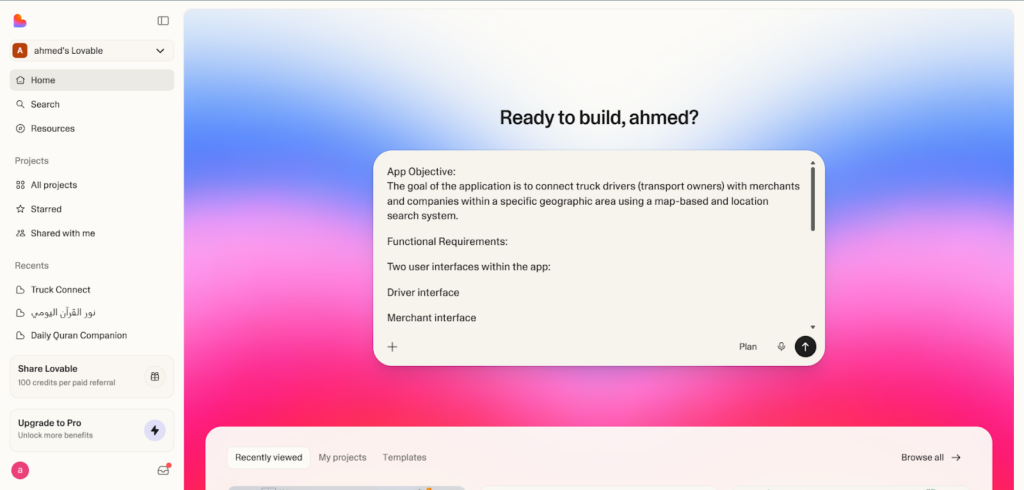 الخيار الثاني هو الاعتماد على أدوات بناء التطبيقات التي تعمل بالذكاء الاصطناعي مثل Lovable أو Bolt أو Glide، وغيرها من الأدوات الحديثة التي تظهر باستمرار.