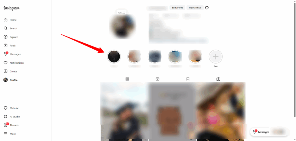 نقل هايلايت القصة (Story highlight) إلى تبويب منفصل