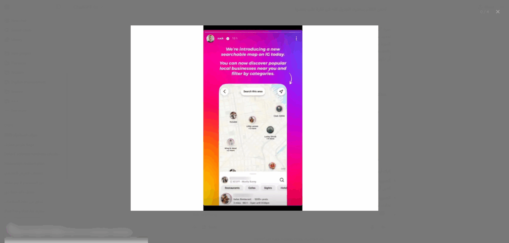 تتيح هذه الميزة عرض القصص التي تحتوي على ذكر لحسابات تجارية أو تحديد مواقع، ضمن خريطة تفاعلية داخل التطبيق. هذا يعزز من ظهور الأنشطة التجارية محليًا ويشجع على زيارتها. كمسوق رقمي، ستساعدك هذه الميزة في زيادة الظهور في نتائج البحث الجغرافي، وتحفيز العملاء على إنشاء محتوى مرتبط بالعلامة التجارية. كما تتيح للأنشطة جذب جمهور جديد قريب من الموقع. لتظهر القصة على الخريطة، يجب أن تكون عامة، وأن يكون الحساب التجاري موثّقًا ومرتبطًا بموقع فعلي.