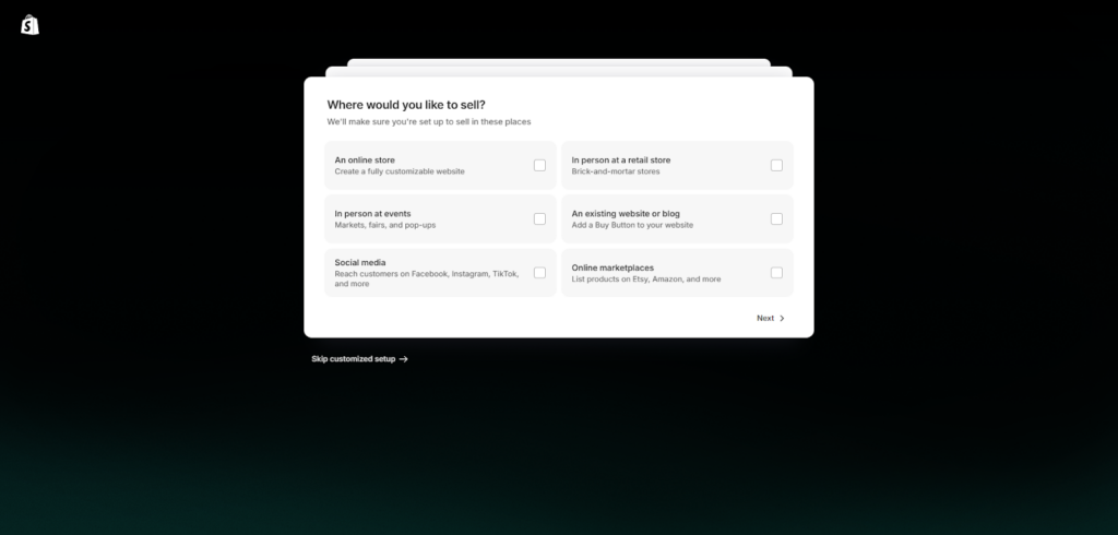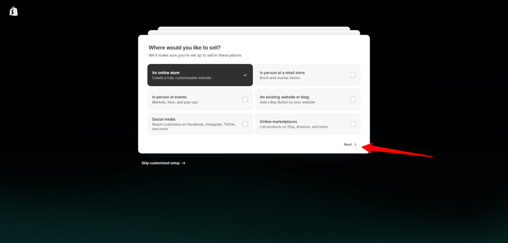 - الآن يسألك شوبيفاي: "أين ترغب أن تبيع منتجاتك؟" سأشرك لك كل خيار: