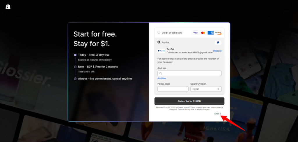 - إن لم تكن مستعد الآن لخطوة بيانات الدفع، يمكنك الضغط على "تخطي"