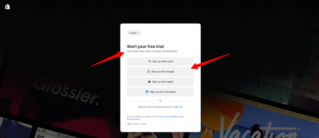 الخطوة الأولى: أنشئ حسابك على شوبيفاي
