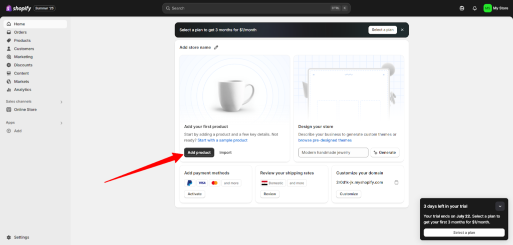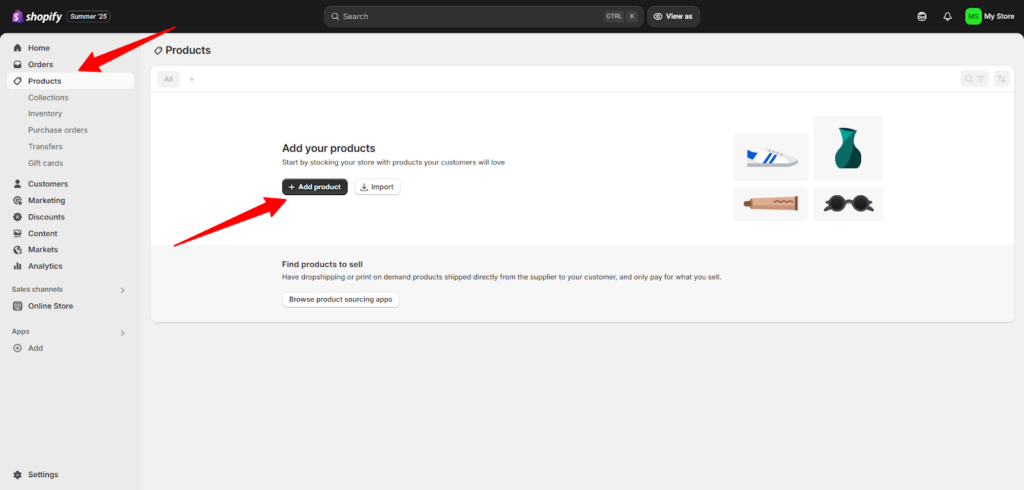 عزيزي القارئ، المتجر بلا منتجات كالمتجر المغلق بلا بضائع!لذا، إن حددت منتجاتك، يمكنك الآن رفعها على شوبيفاي: