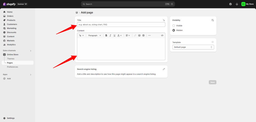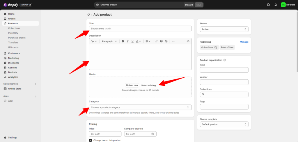 لن أتطرق إلى جزئية المنتجات لأنني تحدثت فيها من قبل باستفاضة عن الدليل الشامل لتحسين صفحة المنتج في متجرك على شوبيفاي، لذا، يمكنك قراءته وتطبيق الخطوات الموجودة فيها لترفع منتجاتك بطريقة مطابقة لمعايير محركات البحث.