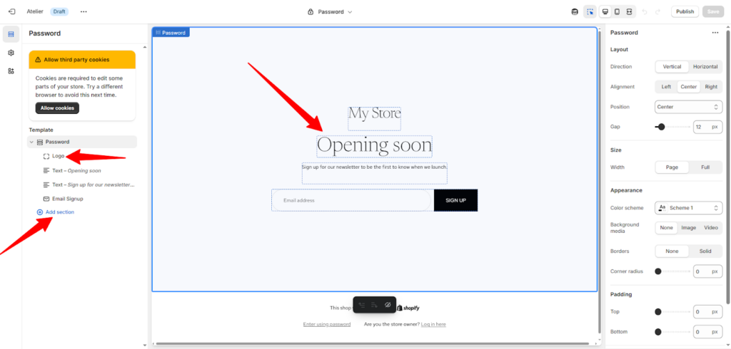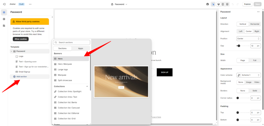 - هل أنهيت التخصيص واختيار كل تصميمات الأقسام؟ لا تقلق يمكنك مواصلة التعديل والتحسين لاحقًا، دعنا نهتم بالأساسيات.