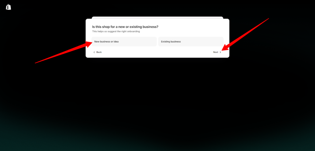 - سيسألك شوبيفاي الآن إن كنت مبتدئ في البيع أو لديك بيزنس بالفعل وترغب في تنميته على شوبيفاي.
